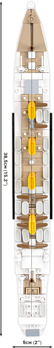 Built from 636 COBI construction blocks the H.M.H.S. Britannic is 38.5cm long and 12cm high in a scale of 1:700. It precisely reproduces the shape and body of the ship and numerous details, such as movable cranes, screws and rudders, which ensure authenticity and the possibility of a fun play experience. The set also includes an elegant display stand with a plaque, making it an ideal element for display in any room of the house.