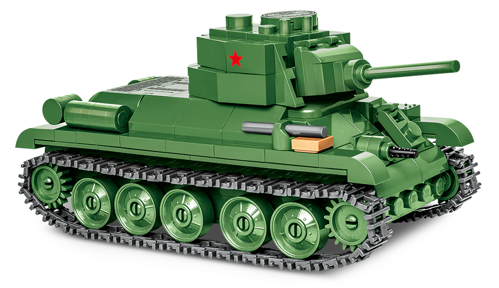 The miniature T-34/76 vehicle made of COBI building blocks was manufactured on a scale of 1:48. It is easy to build, ideal for the beginning of the adventure with Polish COBI building blocks. It has a moving gun, a rotating turret and working crawler traction. All graphic details are high-quality prints that do not scratch or smear, even during intense play. The set is equipped with two sets of markings: Soviet stars and the Eagle of the Polish Armed Forces in the USSR with the number 217, referring to the heroic crew of the tank from the Battle of Studziankami! The design in a unique way reflects the original shapes of its historical inspiration. The T-34/76 is also a great toy and a unique piece of any military or armored weapons fan’s collection.